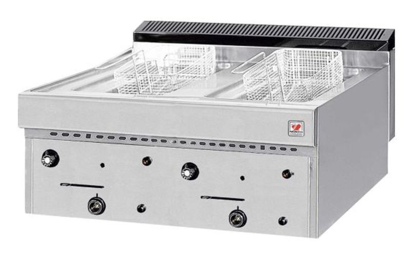 Επιτραπέζια φριτέζα υγραερίου με κρύα ζώνη. Διαθέτει Θερμοστάτη για τον σωστό έλεγχο θερμοκρασίας του λαδιού - Αποσπώμενη Σήτα για την περισυλλογή των υπολειμμάτων. Βάνα με Μεγάλη διάμετρο για την έξοδο λαδιού και τον εύκολο καθαρισμό, χάρη στην τεχνολογία κρύας ζώνης.