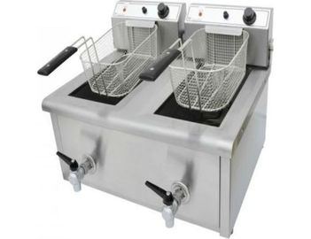 Επαγγελματική ηλεκτρική φριτέζα της εταιρείας ΤζεΘάν με ισχύ 6.4kW. Μπορεί και διατηρεί τη θερμοκρασία του ζεστού λαδιού για περισσότερο χρόνο σε σχέση με τις φριτέζες αερίου και είναι ευέλικτη στην τοποθέτησή της στο χώρο της κουζίνας καθώς λειτουργεί με ρεύμα. Διαθέτει 2 διαφορετικούς κάδους ώστε να μπορείτε να τηγανίζετε διαφορετικά προϊόντα ή να χρησιμοποιείτε τους κάδους εναλλάξ ώστε το λάδι να έχει πάντα τη σωστή θερμοκρασία. Κάθε κάδος χωράει 10 λίτρα και μπορεί να τηγανίσει από 2 έως 3 κιλά πατάτες. Τέλος, διαθέτει βρυσάκι που εξασφαλίζει πιο γρήγορο και ασφαλές καθάρισμα του κάδου.