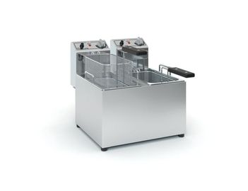 Επαγγελματική ηλεκτρική φριτέζα της εταιρείας ΤζεΘάν με ισχύ 5.2kW. Μπορεί και διατηρεί τη θερμοκρασία του ζεστού λαδιού για περισσότερο χρόνο σε σχέση με τις φριτέζες αερίου και είναι ευέλικτη στην τοποθέτησή της στο χώρο της κουζίνας καθώς λειτουργεί με ρεύμα. Διαθέτει 2 διαφορετικούς κάδους ώστε να μπορείτε να τηγανίζετε διαφορετικά προϊόντα ή να χρησιμοποιείτε τους κάδους εναλλάξ ώστε το λάδι να έχει πάντα τη σωστή θερμοκρασία. Κάθε κάδος χωράει 4 λίτρα και μπορεί να τηγανίσει έως και 1 κιλό πατάτες.