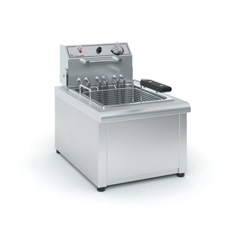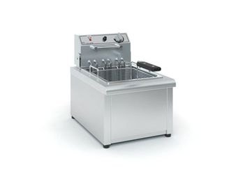 Επαγγελματική ηλεκτρική φριτέζα της εταιρείας ΤζεΘάν με ισχύ 3.2kW. Μπορεί και διατηρεί τη θερμοκρασία του ζεστού λαδιού για περισσότερο χρόνο σε σχέση με τις φριτέζες αερίου και είναι ευέλικτη στην τοποθέτησή της στο χώρο της κουζίνας καθώς λειτουργεί με ρεύμα. Έχει χωρητικότητα 7 λίτρα και μπορεί να τηγανίσει από 2 έως 3 κιλά πατάτες.