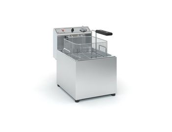 Επαγγελματική ηλεκτρική φριτέζα της εταιρείας ΤζεΘάν με ισχύ 3.2kW. Μπορεί και διατηρεί τη θερμοκρασία του ζεστού λαδιού για περισσότερο χρόνο σε σχέση με τις φριτέζες αερίου και είναι ευέλικτη στην τοποθέτησή της στο χώρο της κουζίνας καθώς λειτουργεί με ρεύμα. Έχει χωρητικότητα 7 λίτρα και μπορεί να τηγανίσει από 2 έως 3 κιλά πατάτες.
