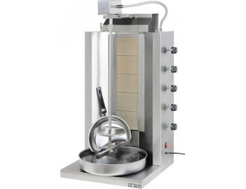 Αυτό το μοντέλο επαγγελματικού γύρου αερίου μπορεί να εξυπηρετήσει άνετα ένα ψητοπωλείο ή ένα γυράδικο μεσαίας δυναμικής. Πέντε οριζόντιοι, πολύ ισχυροί καυστήρες υπέρυθρης ακτινοβολίας εγγυώνται άψογο και υγιεινό ψήσιμο χάρη στα καλύτερα κεραμικά πλακίδια αντοχής σε υψηλή θερμοκρασία έως και 1250° C. Ένας μηχανισμός επίκλησης της σούβλας, με το μοτέρ στερεωμένο στο επάνω μέρος της, επιτρέπει απόλυτο έλεγχο της απόστασης του γύρου από τη φωτιά και επιπλέον προστατεύει το μοτέρ από βλάβες. Στη βάση της συσκευής, ένα έξυπνο σύστημα «γέφυρας» διευκολύνει και επιταχύνει πάρα πολύ τον καθαρισμό της σε ώρες αιχμής ή μετά από πολύωρη χρήση. Σχεδιασμένο με γνώμονα τη διάρκεια και την αξιοπιστία είναι μια ιδανική λύση για τους επαγγελματίες της εστίασης.