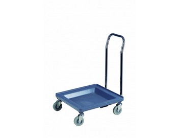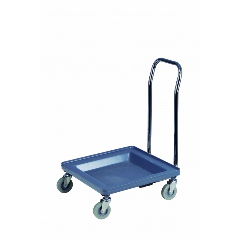 Καρότσι μεταφοράς καλαθιών πλυντηρίου σε γκρι χρώμα με επιχρωμιωμένη λαβή.
