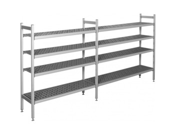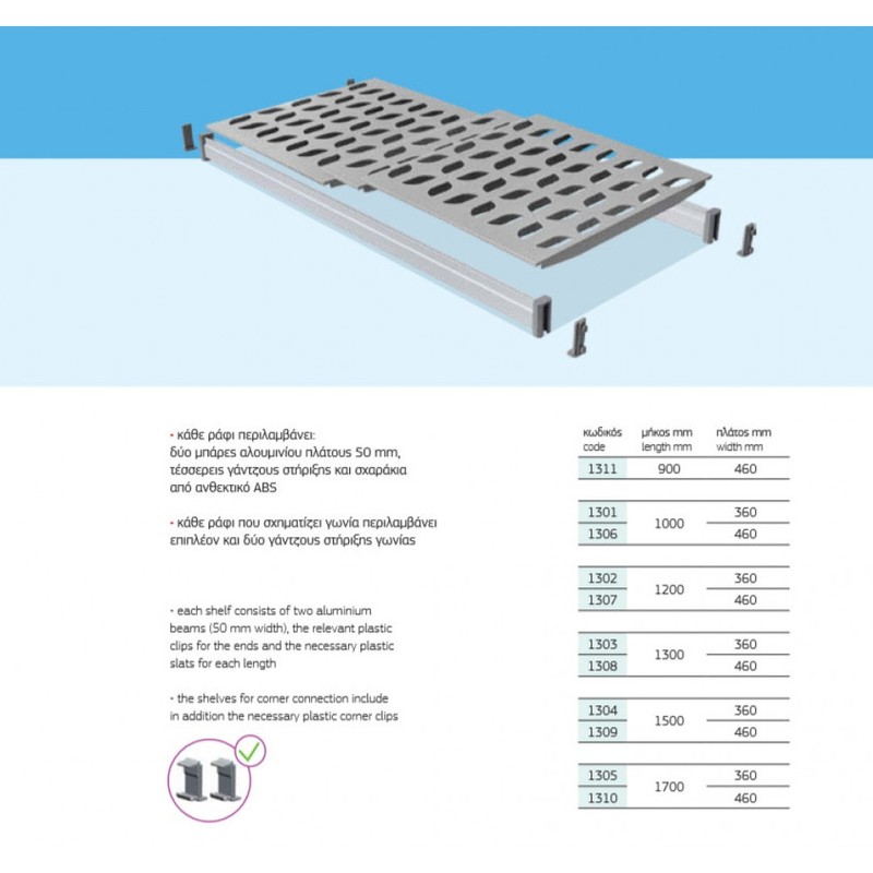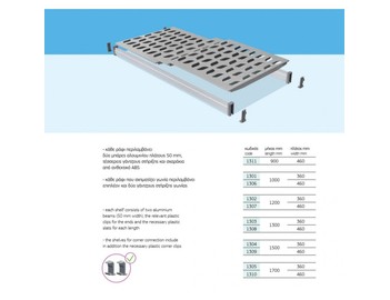 - Σύστημα επαγγελματικών ραφιών με σκελετό από ανοδιωμένο αλουμίνιο και διάτρητα πλαστικά σχαράκια από ανθεκτικό ΑΒS.