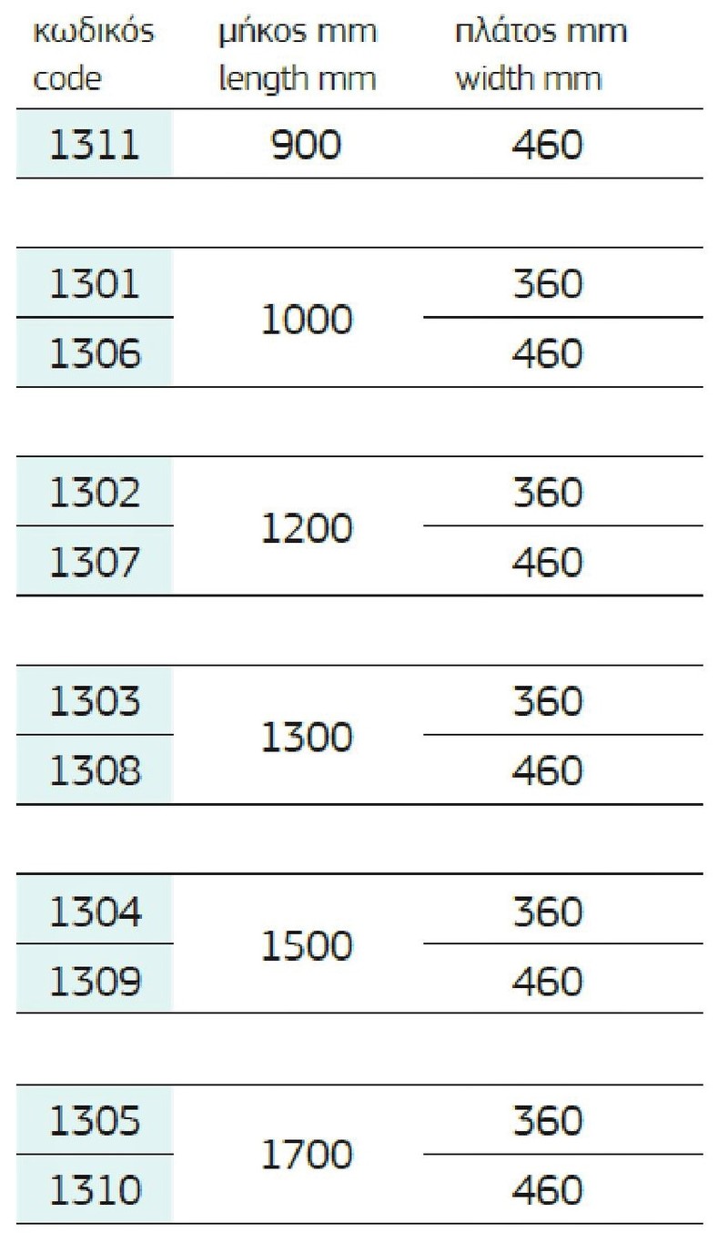 - Σε 2 πλάτη 360 mm και 460 mm.