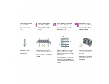 Διάτρητα σχαράκια για ομοιόμορφη κατανομή της θερμοκρασίας και επαρκή αερισμό των τροφίμων. Κατασκευή από ανθεκτικό ABS.