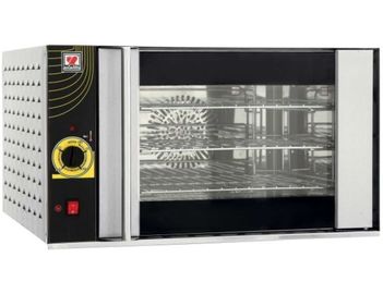 Φούρνος Αέρος Οικονομική σειρά με 3 θέσεις με μικρό θάλαμο για γρήγορο αποτέλεσμα. Δυνατότητα τοποθέτησης 3 ταψιών 40χ40εκ. Μπορεί να χρησιμοποιηθεί για ψήσιμο σφολιάτας – γλυκών και χάρη στην δυνατότητα εναλλαγής της βάσης στήριξης ταψιών μπορεί να τοποθετηθούν 3 ταψιά G/N ½ για μαγειρευτά φαγητά. Το μοντέλο F34 διαθέτει ένα γενικό διακόπτη και ένα θερμοστάτη 300Cº.