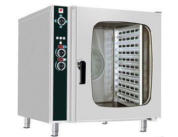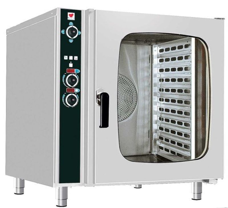 Ηλεκτρικός φούρνος αέρος με αυτόματη ή χειροκίνητη υγρασία. Ηλεκτρονικός θερμοστάτης και χρονοδιακόπτης. 10 θέσεων 60 x 40 cm ή με αλλαγή της βάσης 10 GN 1/1.