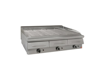 Ψησταριά αερίου νερού με νερό στο συρτάρι με δύο ΙΝΟΧ καυστήρες δύο ΙΝΟΧ σχάρες και μία πλάκα, με πιλότο και θερμοκόπια ,δουλεύει σε όλα τα αέρια(υγραέριο και φυσικό αέριο).Η πιο αξιόπιστη λύση για τον απαιτητικό επαγγελματία που θέλει τα ψητά του να ψήνονται ομοιόμορφα διατηρώντας την υγρασία και την γεύση τους αναλλοίωτες. Λειτουργεί με το νερό στο συρτάρι για την αποφυγή καπνών και φωτιών κατά την διάρκεια του ψησίματος. Ομοιόμορφο ψήσιμο σε όλη την επιφάνεια χωρίς νεκρές ζώνες.
