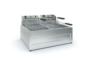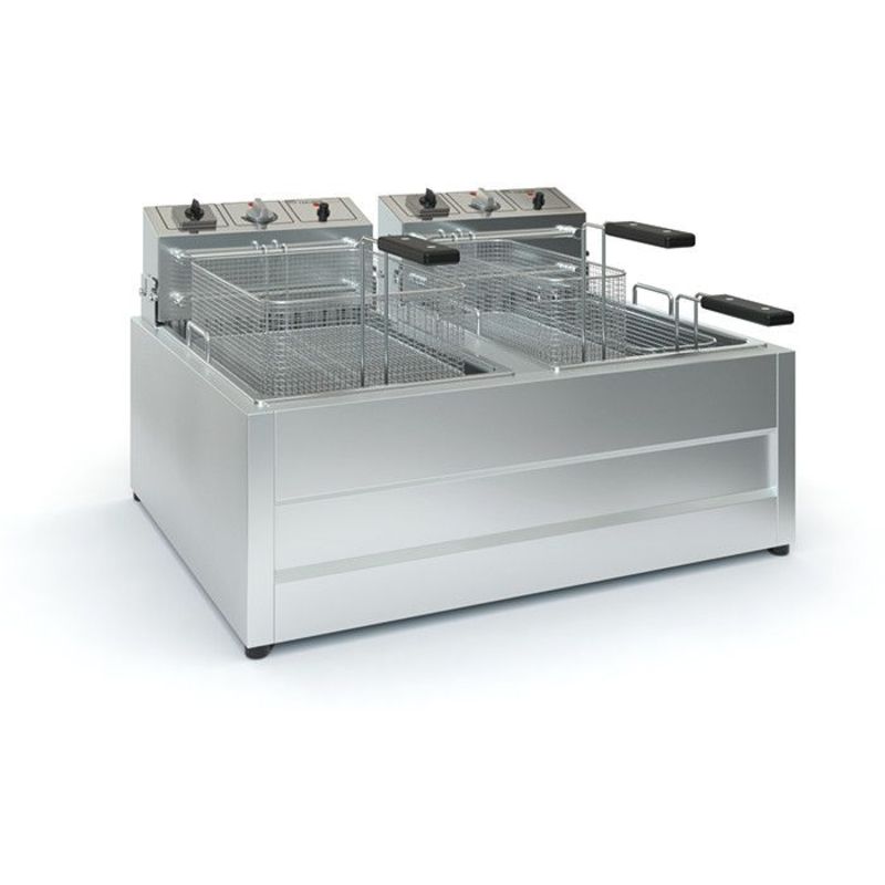 Επαγγελματική ηλεκτρική φριτέζα της εταιρείας ΤζεΘάν με ισχύ 12kW. Μπορεί και διατηρεί τη θερμοκρασία του ζεστού λαδιού για περισσότερο χρόνο σε σχέση με τις φριτέζες αερίου και είναι ευέλικτη στην τοποθέτησή της στο χώρο της κουζίνας καθώς λειτουργεί με ρεύμα. Διαθέτει 2 διαφορετικούς κάδους ώστε να μπορείτε να τηγανίζετε διαφορετικά προϊόντα ή να χρησιμοποιείτε τους κάδους εναλλάξ ώστε το λάδι να έχει πάντα τη σωστή θερμοκρασία. Κάθε κάδος χωράει 13 λίτρα και μπορεί να τηγανίσει από 3 έως 4 κιλά πατάτες.
