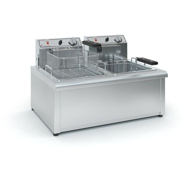 Επαγγελματική ηλεκτρική φριτέζα της εταιρείας ΤζεΘάν με ισχύ 6.4kW. Μπορεί και διατηρεί τη θερμοκρασία του ζεστού λαδιού για περισσότερο χρόνο σε σχέση με τις φριτέζες αερίου και είναι ευέλικτη στην τοποθέτησή της στο χώρο της κουζίνας καθώς λειτουργεί με ρεύμα. Διαθέτει 2 διαφορετικούς κάδους ώστε να μπορείτε να τηγανίζετε διαφορετικά προϊόντα ή να χρησιμοποιείτε τους κάδους εναλλάξ ώστε το λάδι να έχει πάντα τη σωστή θερμοκρασία. Κάθε κάδος χωράει 7 λίτρα και μπορεί να τηγανίσει από 2 έως 3 κιλά πατάτες.