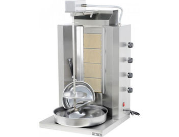 Ένα μικρό αλλά αποδοτικό μοντέλο επαγγελματικού γύρου αερίου με 4 καυστήρες, ιδανικό για εστιατόρια, ξενοδοχεία ή μικρά ψητοπωλεία που θέλουν να προσθέσουν γύρο στο μενού τους. Η οριζόντια διάταξη των καυστήρων επιτρέπει γρήγορο ψήσιμο, ώστε να εξυπηρετούνται άμεσα οι ανάγκες συνεχούς ροής στις ώρες αιχμής. Ένα πατενταρισμένο σύστημα στερέωσης της σούβλας προσφέρει ασφάλεια και ευκολία στη χρήση. Κατασκευασμένο με υλικά εξαιρετικής ποιότητας και μεγάλης αντοχής, σας απαλλάσσει από την έννοια και την ανάγκη ιδιαίτερης φροντίδας για πολλά χρόνια, ενώ ο λιτός σχεδιασμός του διευκολύνει πολύ τον καθαρισμό και τη συντήρησή του.