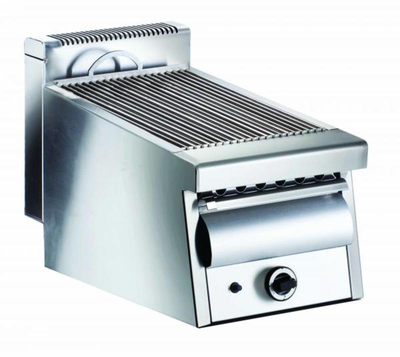 Γκριλ γκαζιού επιτραπέζιο με συρτάρι νερού Artemis.Καυστήρες με πιλότο και θερμοκόπια ασφαλείας.Με συρτάρι νερού κάτω από τους καυστήρες, ώστε να λειτουργεί ως λιποσυλλέκτης για την αποφυγή δυσάρεστων καπνών και φλογών και για να διατηρούν τα κρέατα τους χυμούς τους.Ίδιο αποτέλεσμα σε όλη την επιφάνεια ψησίματος.Με διακόπτη δυο θέσεων, ψηλή και χαμηλή φωτιά.Παράγεται με μια, δυο, ή τρεις επιφάνειες ψησίματος, κάθε μια με το δικό της ανεξάρτητο καυστήρα.Η κατασκευή είναι από ανοξείδωτο σατινέ 304, πάχους 1mm.Όλα τα γκριλ έχουν πιστοποίηση CE.